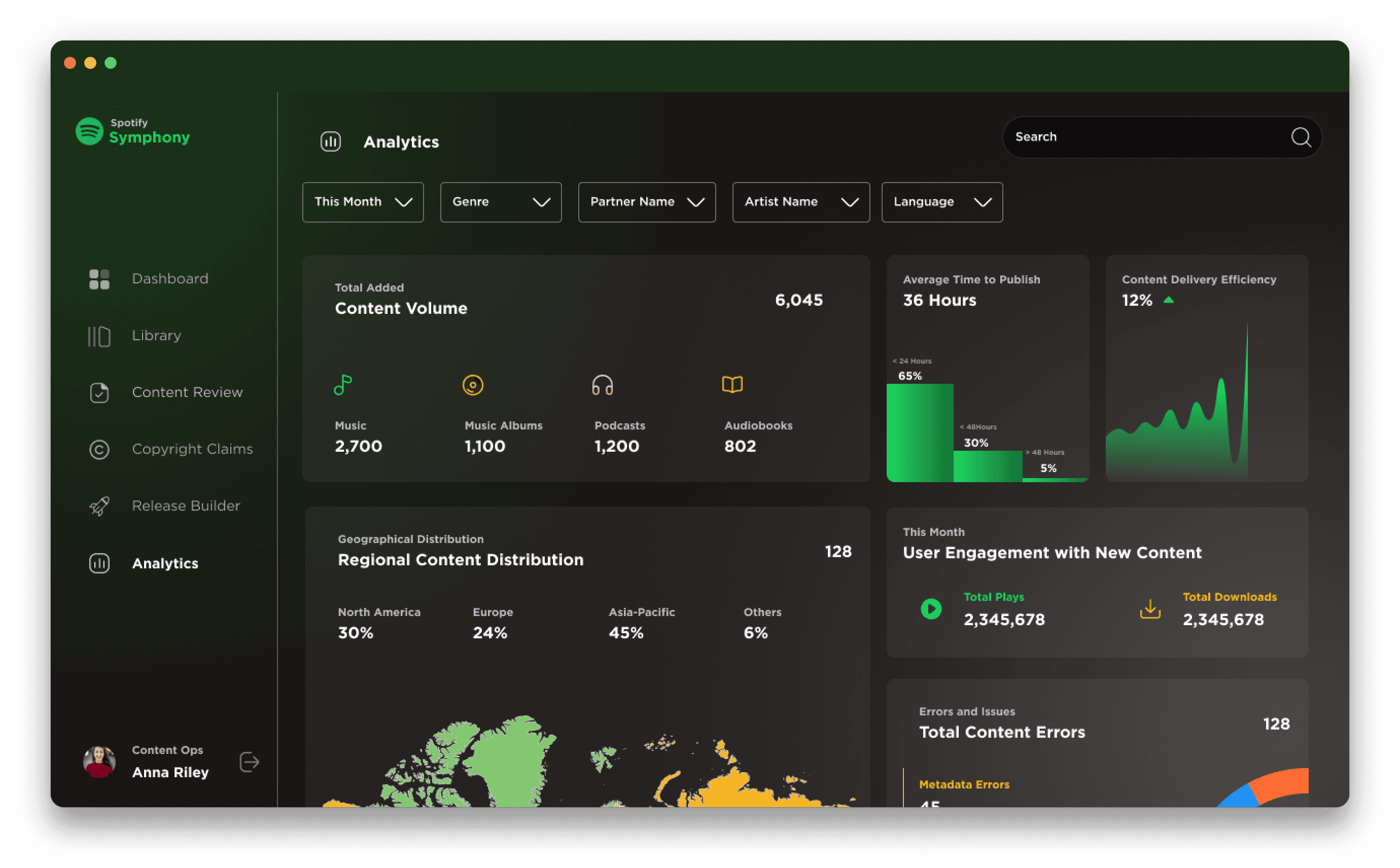 A conceptual redesign of Spotify’s internal Content Ops dashboard