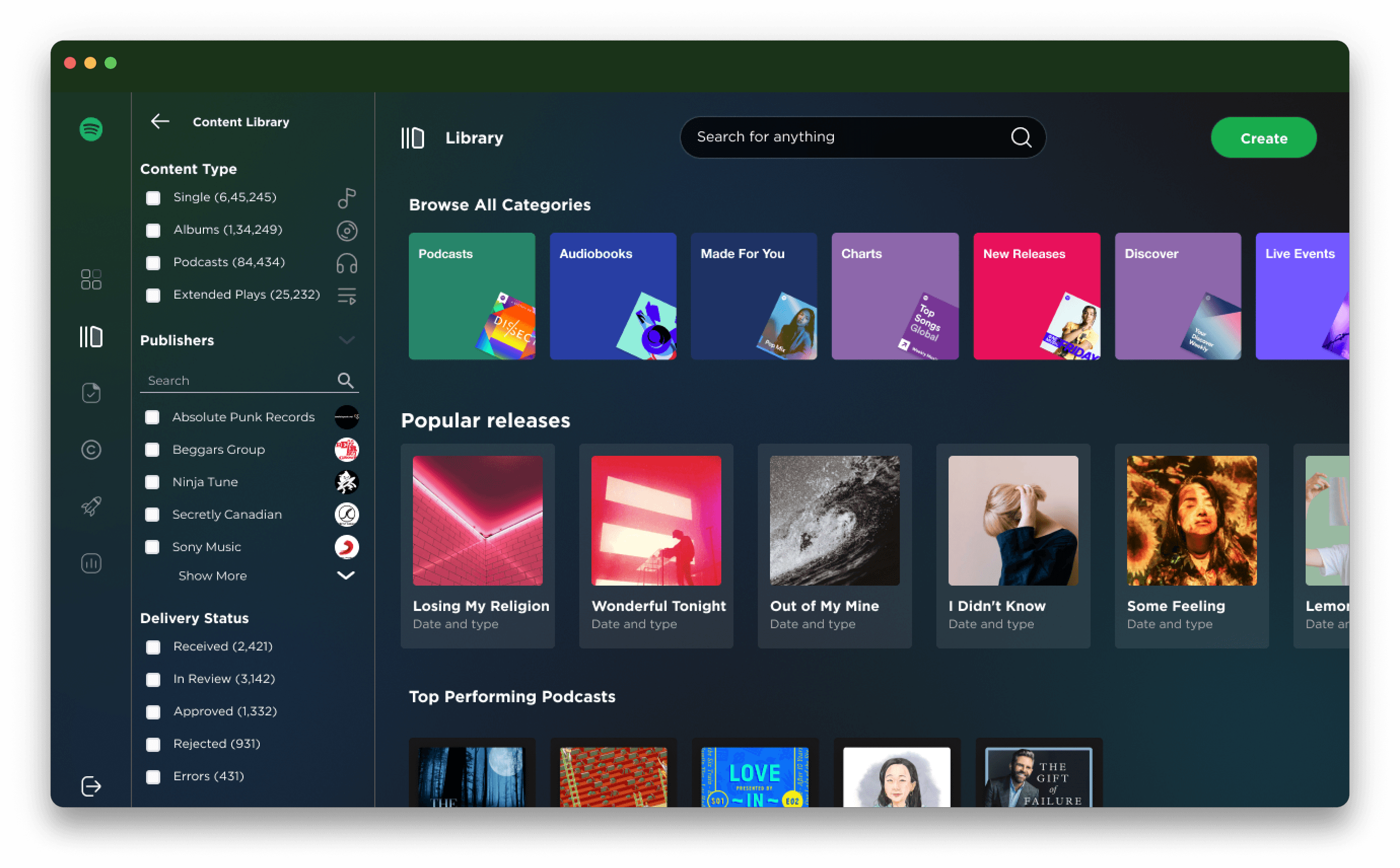 A single place to browse everything Spotify receives — music, albums, podcasts, audiobooks, and more.