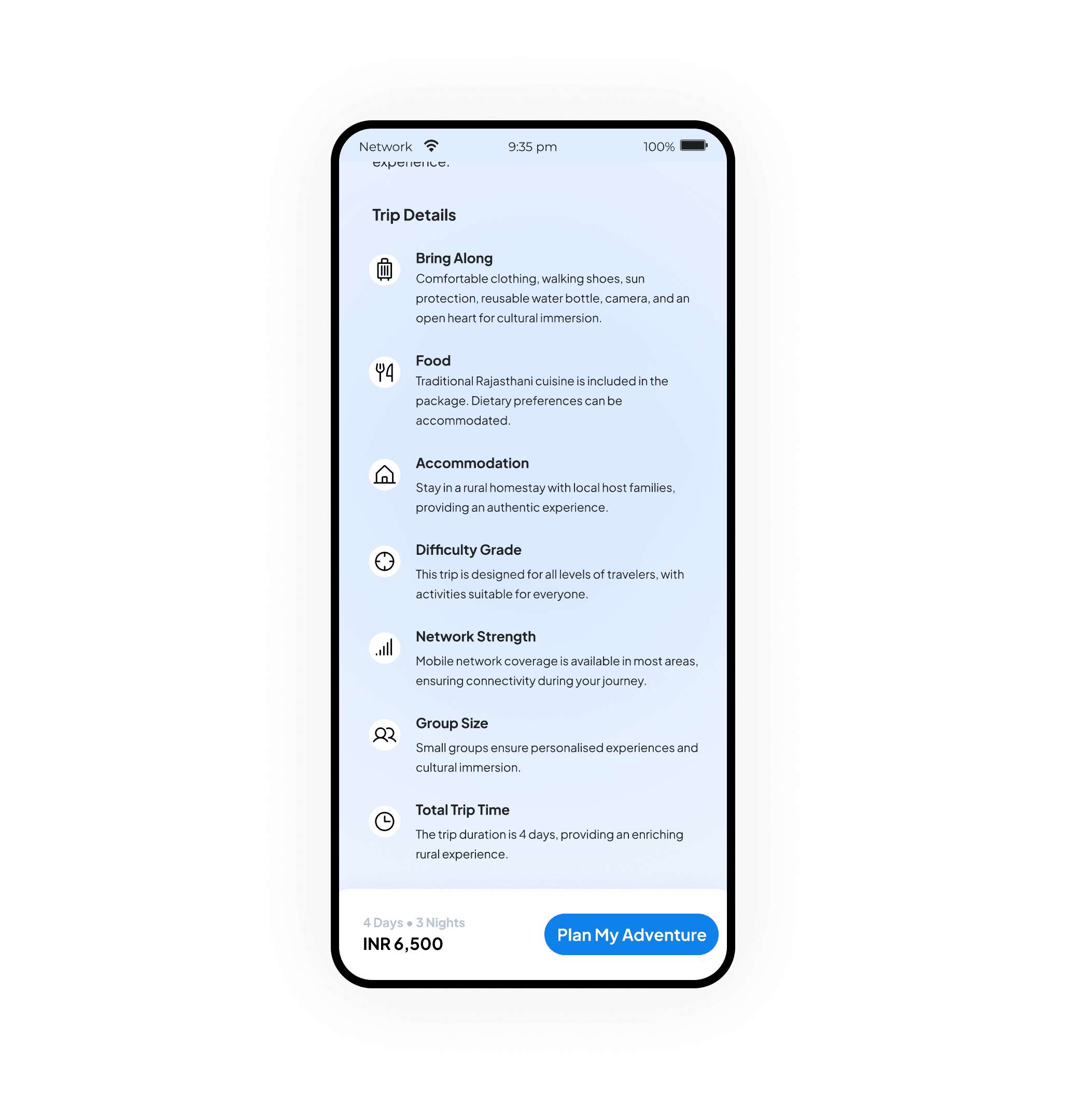 Local communities are often reduced to visuals. Travelers need guided cultural entry points.Seamless Planning Journey
