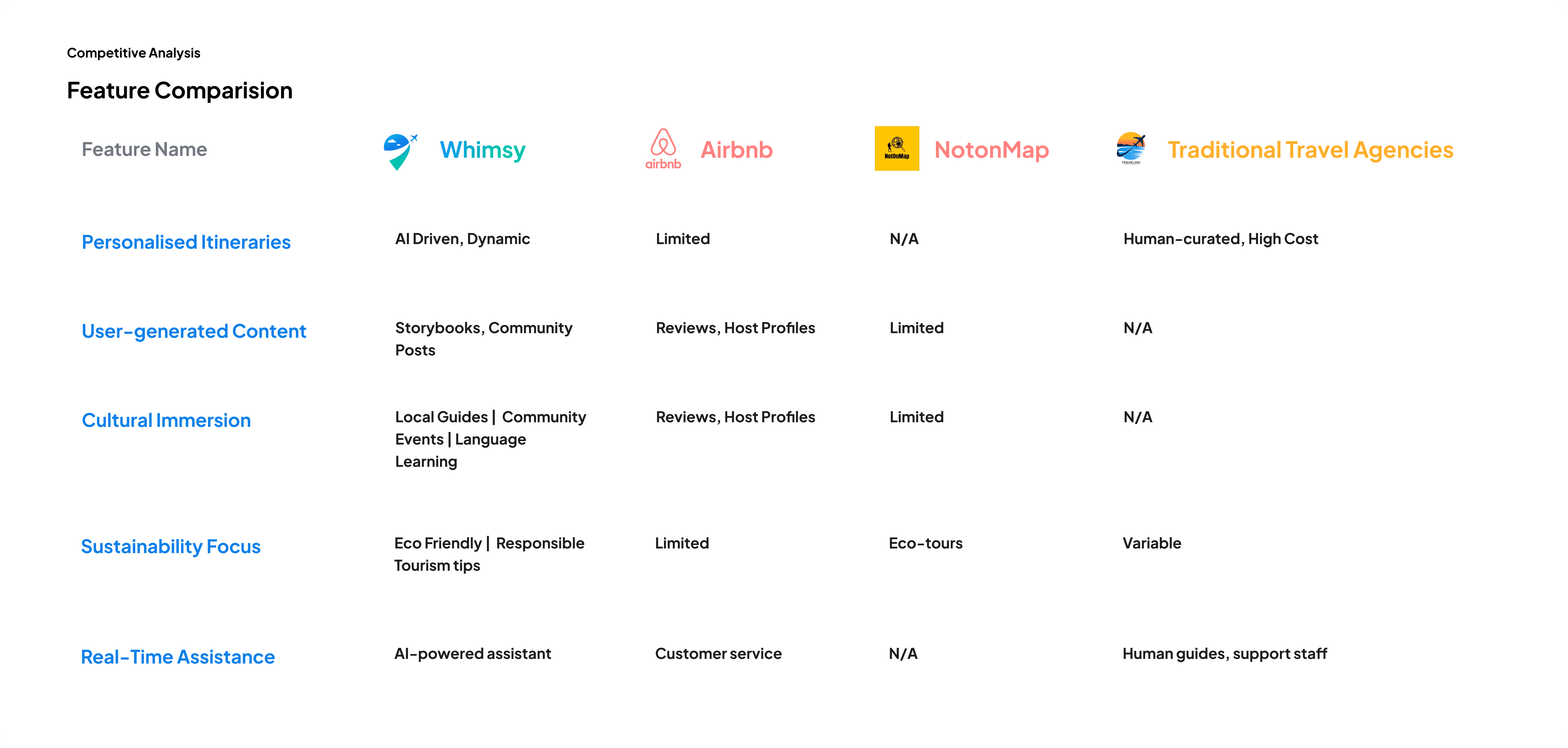To ground Whimsy in reality, I studied key industry players and their user experience gaps.