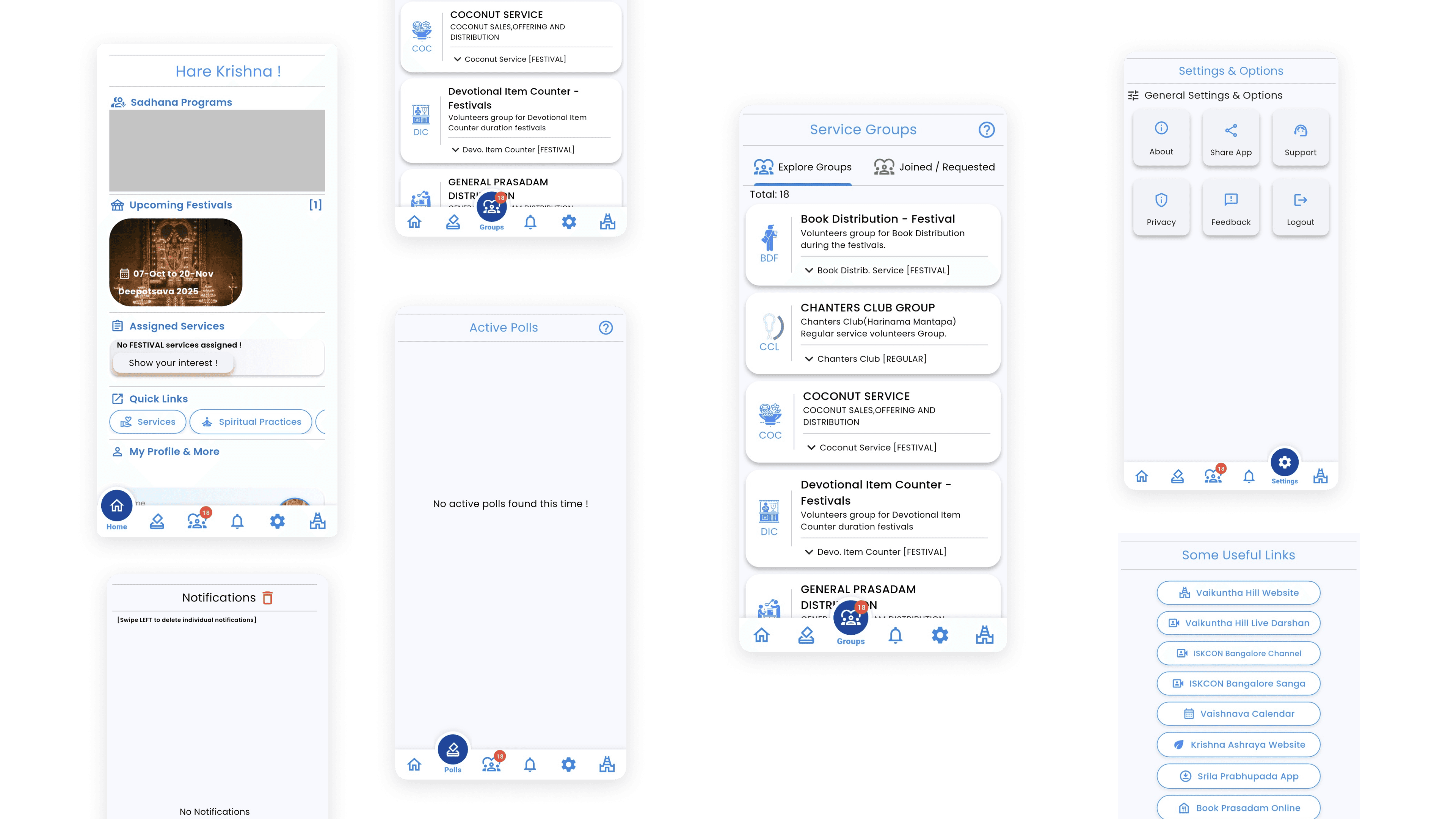 VCM Temple runs on a large volunteer community supporting daily services and festival-scale operations. The existing volunteer experience was functional but heavy: volunteers had to interpret long lists, rely on external coordination, and navigate multiple screens just to find seva, confirm availability, or stay updated during festivals.
